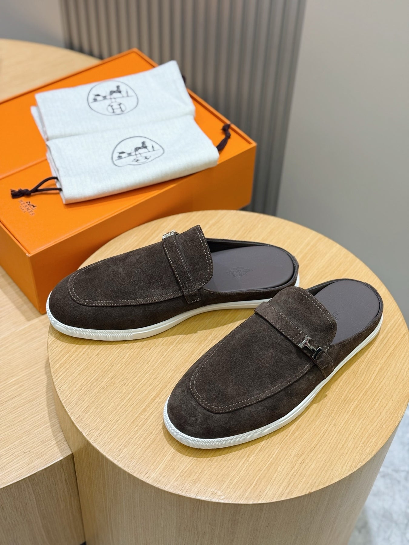Discover the ultimate luxury and style with our Her-mes shoes for men's. Made by a prestigious brand, these shoes boast quality craftsmanship and timeless design. Elevate your wardrobe and make a statement with every step.