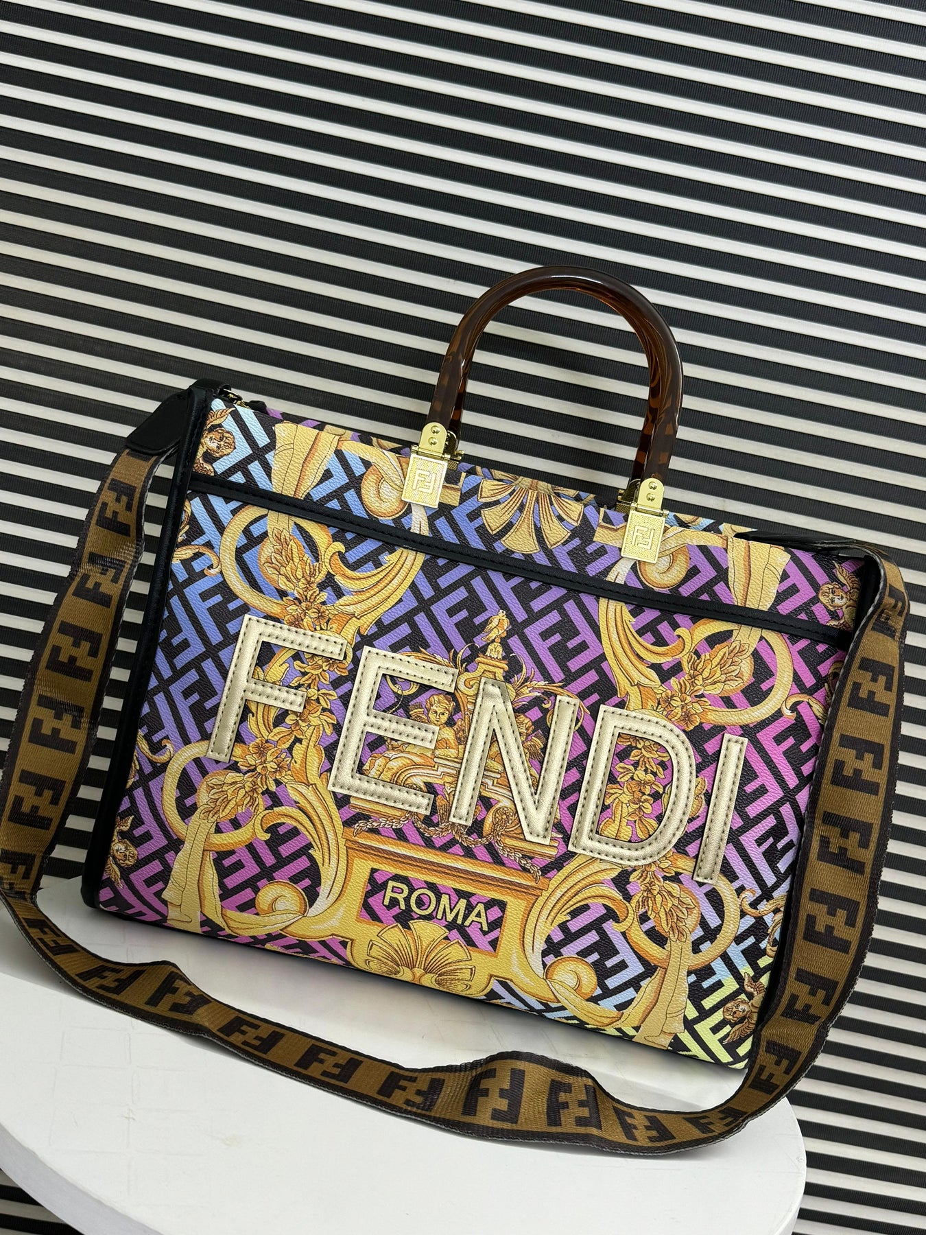 Fashion Brand Collab Fen di x Ver-sace Fen dace Sunshine Tote Bag for Women