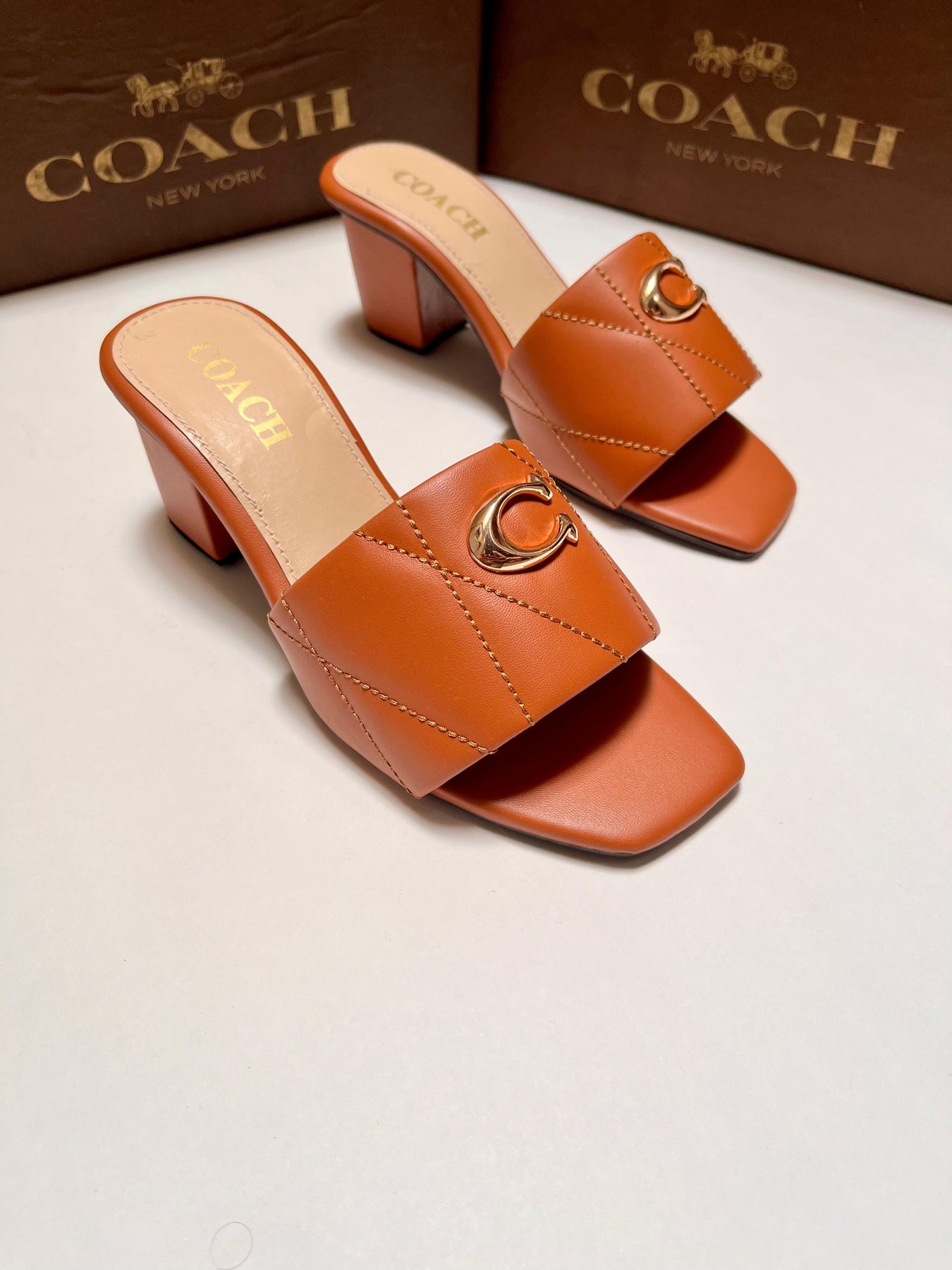 Famous brand Coa-ch block  heels for women