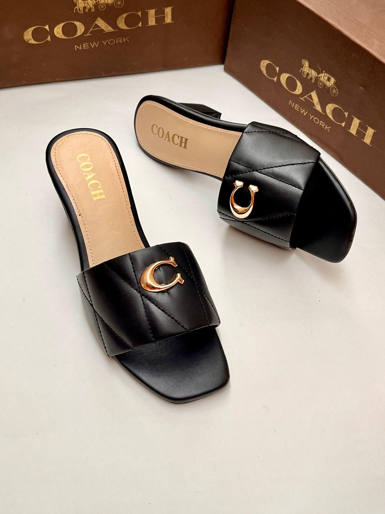 Elevate your style with these famous brand Coa-ch block heels for women. The timeless design and high-quality construction make these heels a must-have for any fashion-forward woman. Experience comfort and confidence with every step, and elevate any outfit effortlessly. Invest in these premium heels today and stand out from the crowd.