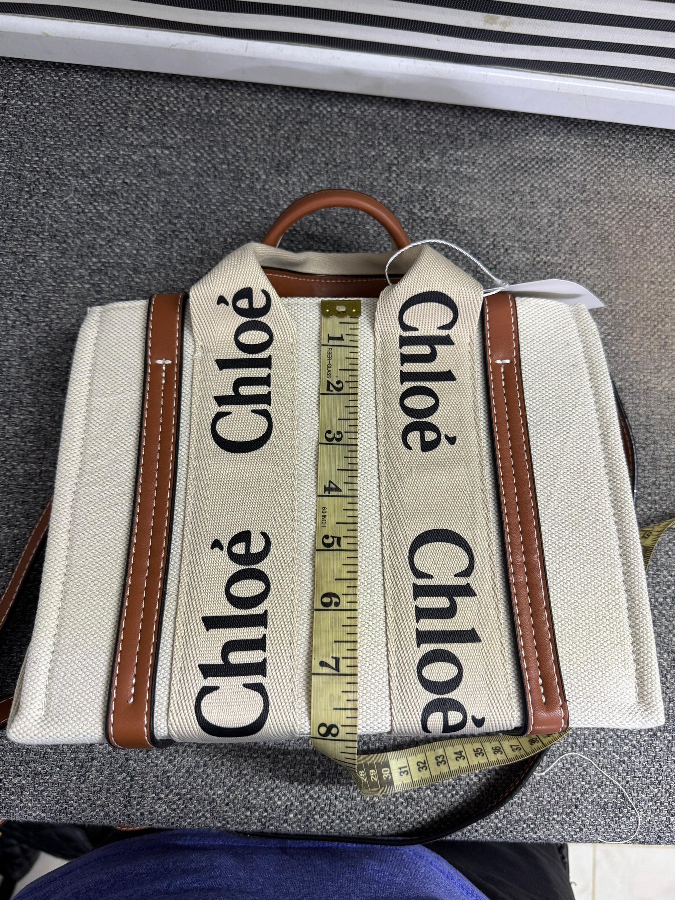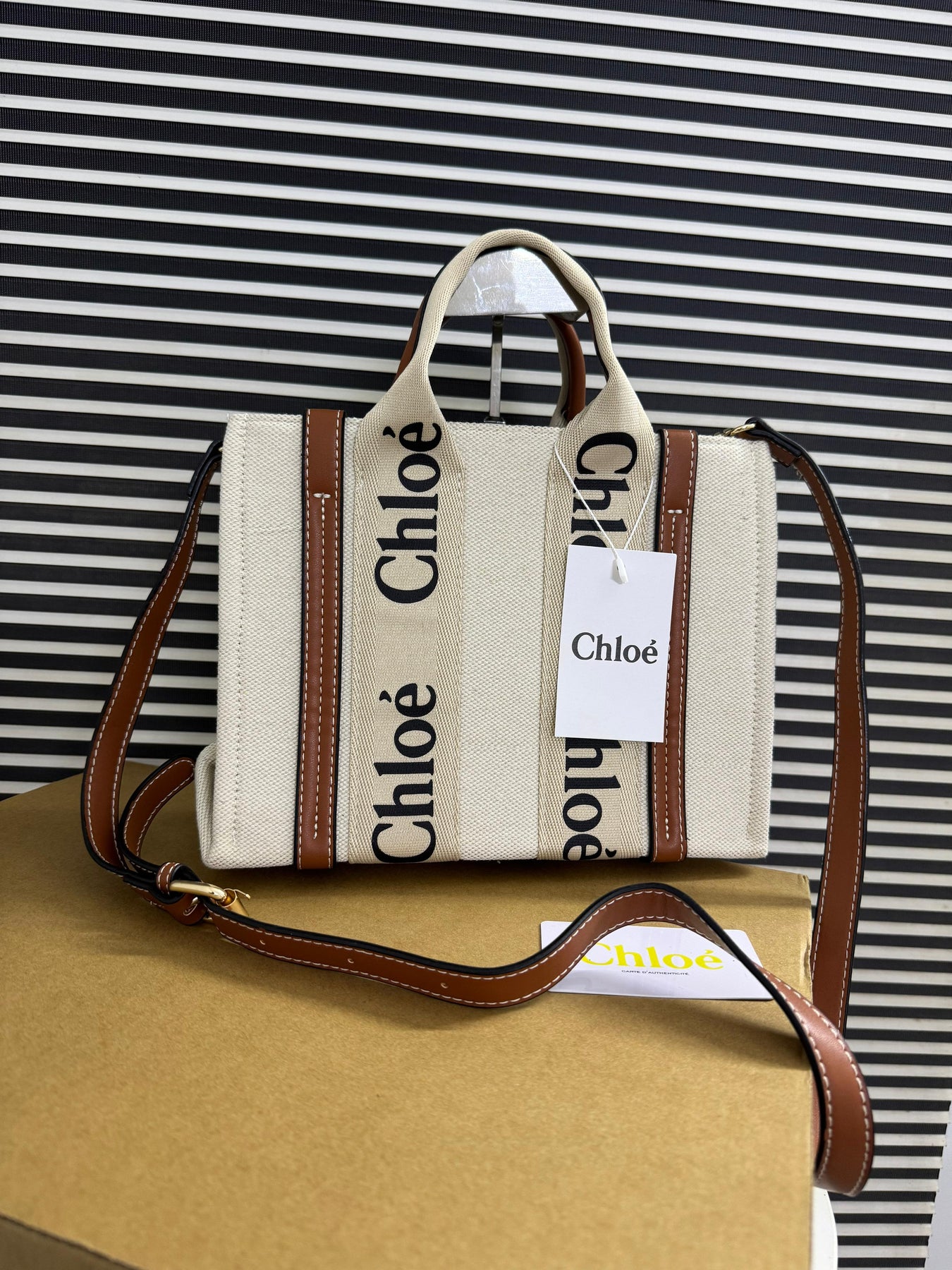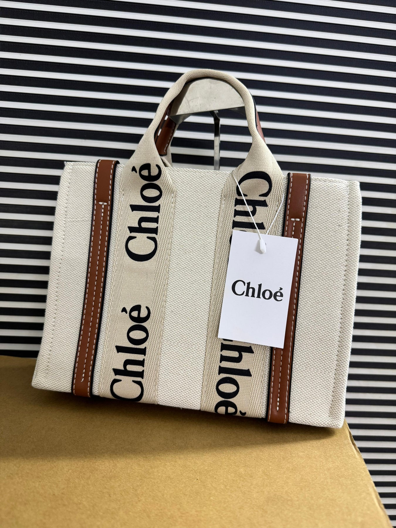 Introducing *Chl-oe, the stylish and versatile SMALL WOODY TOTE BAG made from high-quality linen. With an understated design, this bag is perfect for any occasion. Its lightweight and durable material make it a must-have accessory for everyday use. Upgrade your wardrobe with *Chl-oe today.