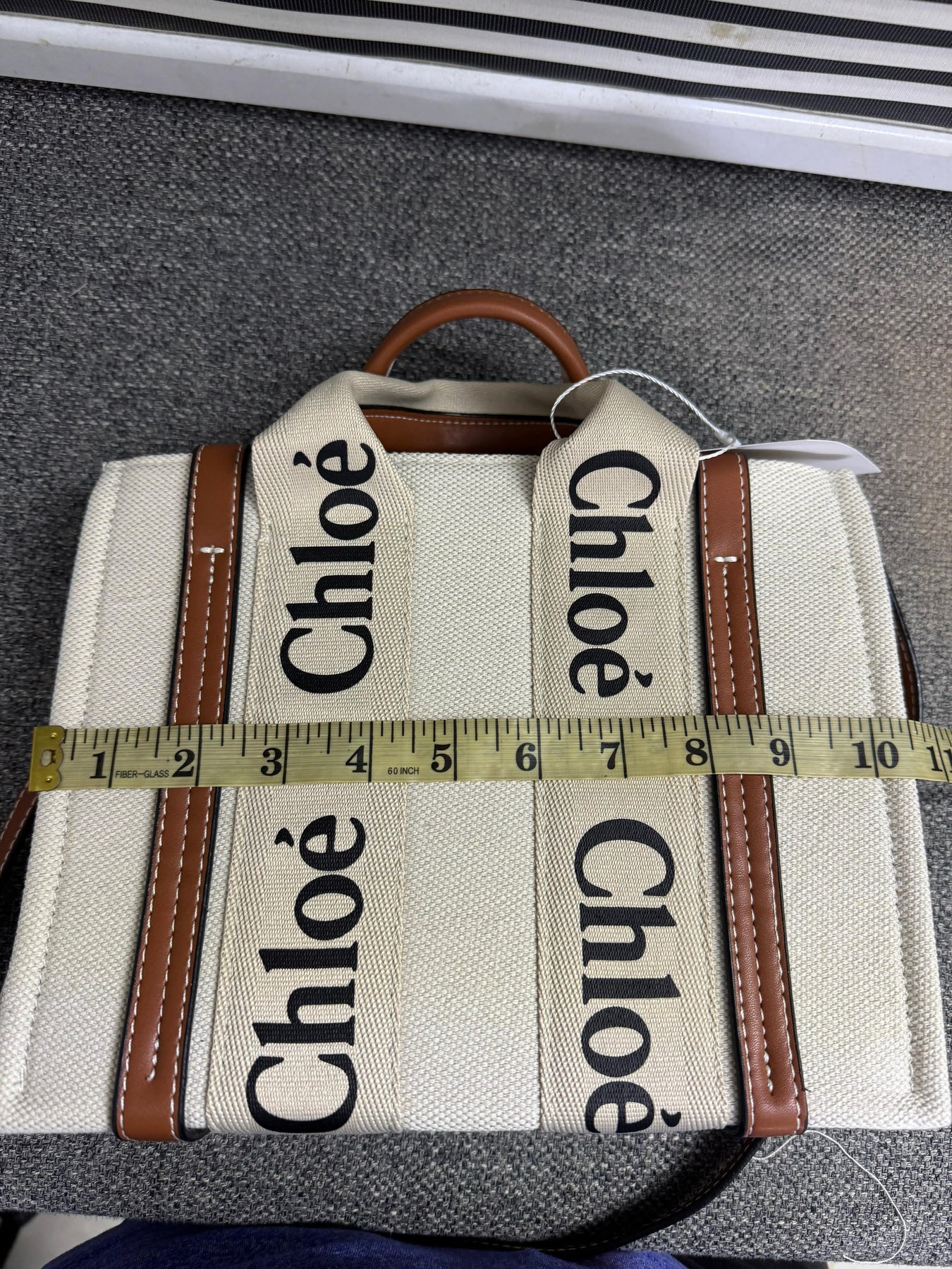 Chl-oe SMALL WOODY TOTE BAG IN Linen for Women