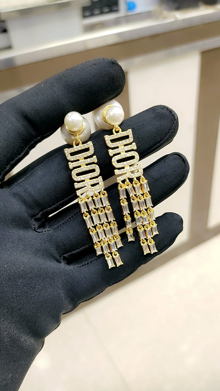 Introducing our stunning Luxury brand D-ior earrings for women. Made with the highest quality materials and meticulous craftsmanship, these earrings exude elegance and sophistication. With their timeless design, they will elevate any outfit and make you feel confident and stylish. Experience the luxury for yourself.