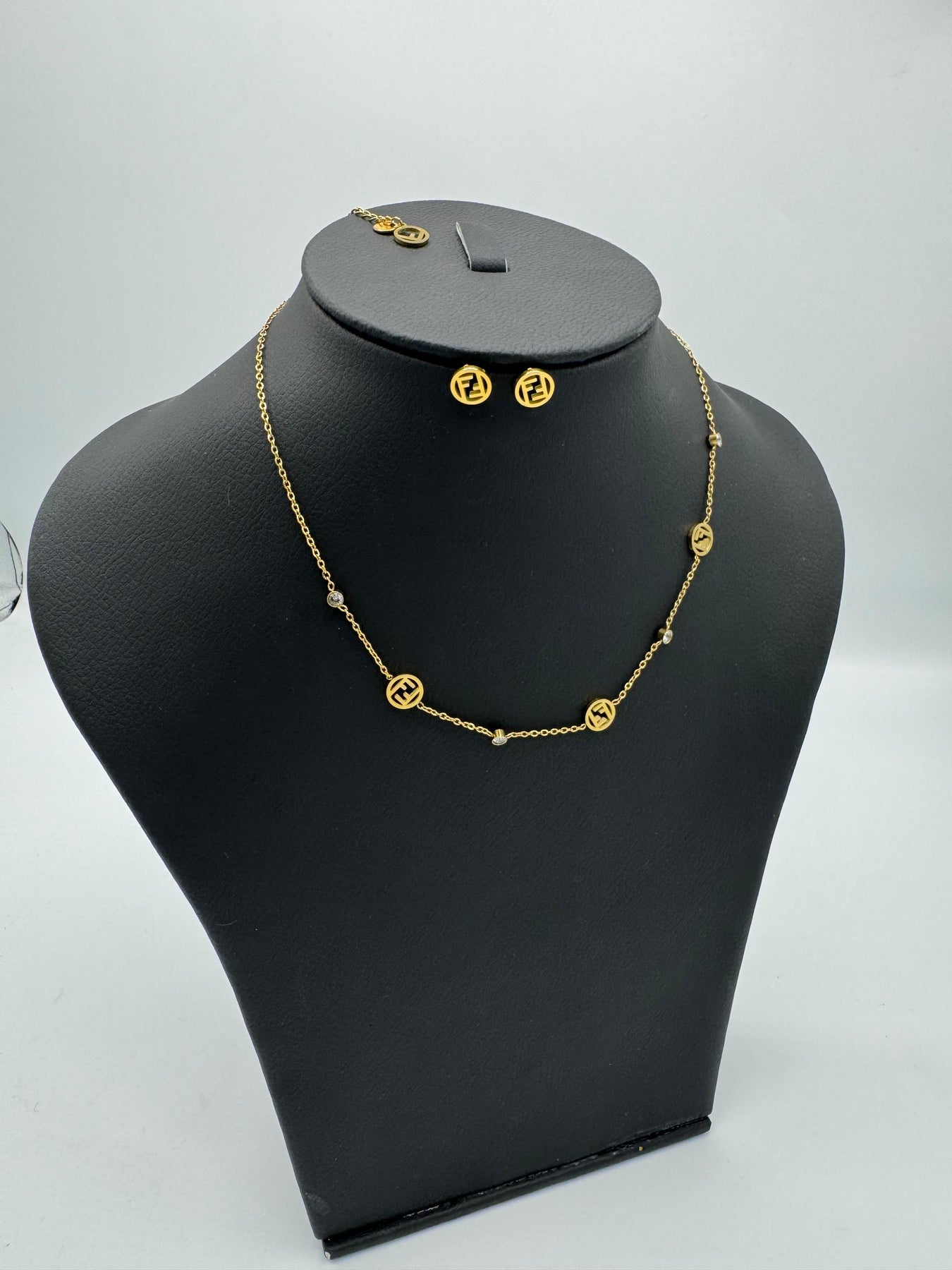 Introducing the Luxury brand Fen-di locket set for women. This high-end set includes a stunning locket, chain, and interchangeable charms. Made with the finest materials, it exudes elegance and sophistication. Elevate your style with this exquisite accessory.