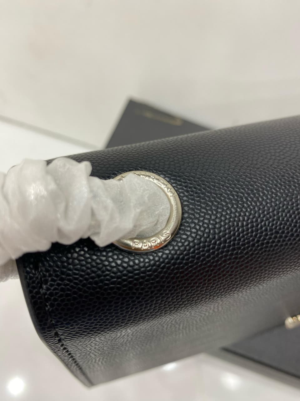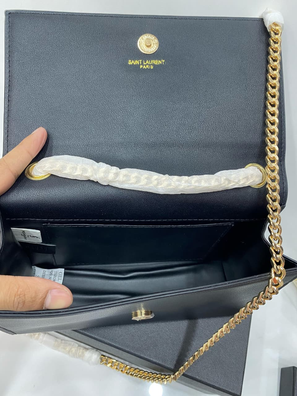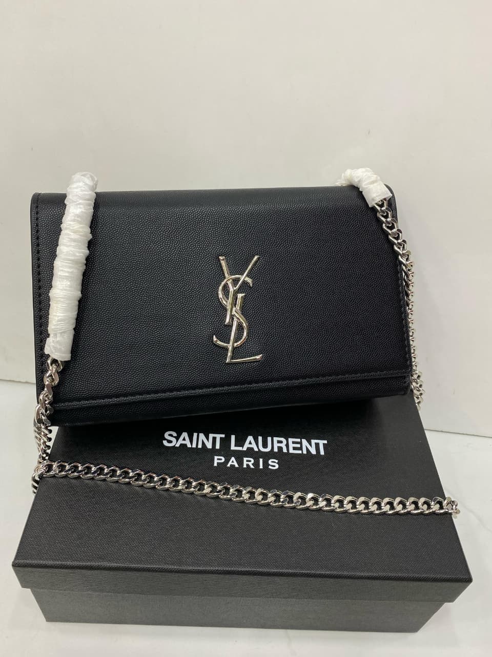 Expertly crafted from smooth leather, the Y-S- Kate crossbody bag boasts luxury and timeless elegance. With a medium size and long chain strap, it's perfect for everyday use or a night out. Stay stylish and organized with this must-have accessory.